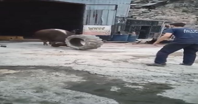 Artvin’de geleneksel olarak düzenlenen boğa güreşleri öncesi boğalar, farklı antrenman teknikleri kullanılarak güreşlere hazırlanıyor. 900 kiloluk ‘Tırpan’ isimli boğa sahibi tarafından iş makinesi tekerlekleriyle güreşlere hazırlanıyor.