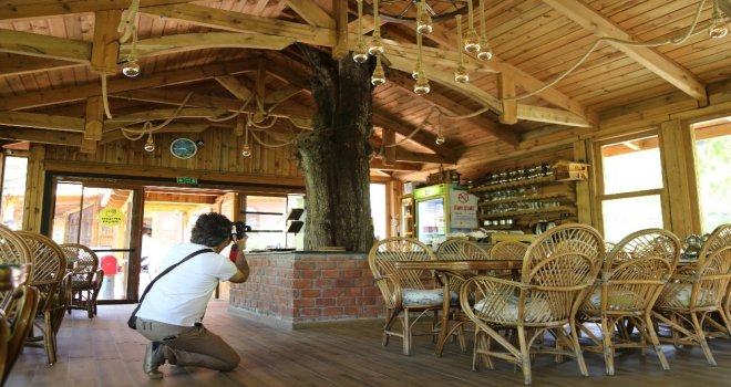 Artvin’in Şavşat ilçesinde 26 yıldır işletmecilik yapan Mete Cem Çelik, 200 yıllık armut ağacını kesmeye kıyamayınca restoranı ağacın içinde kalacak şekilde inşa etti.