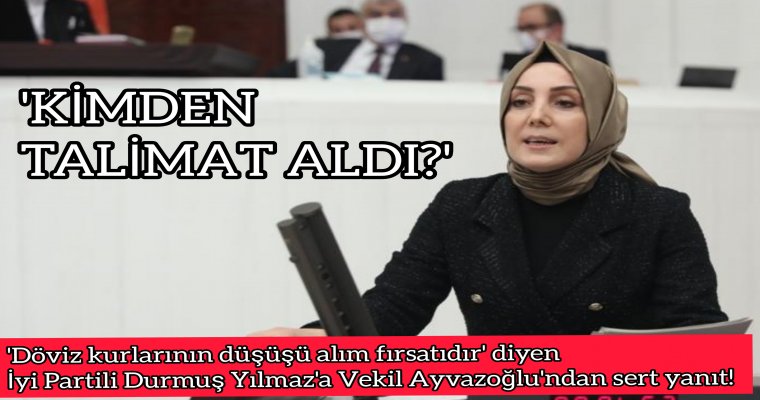 İyi Parti Milletvekili Durmuş Yılmaz’ın 'Döviz kurlarının düşüşü alım fırsatıdır' sözleriyle bilinçli şekilde halkı zarara uğramak pahasına Türk lirasının da değer kaybetmesi için kabul edilemez bir girişimde bulunduğunu belirten Milletvekili Ayvazoğlu “ Milletvekili sıfatı ile bu korkunç açıklamayı yapan Durmuş Yılmaz'ın geçmişte olduğu gibi otel odalarında gizli gizli görüşme yapıp yapmadığı konusunda kamuoyunun kafasında soru işaretleri oluştu. Neye dayanarak bu açıklamayı yapmıştır? Kimden talimat almıştır? Bunu kamuoyuna açıklamalıdır. ”dedi.