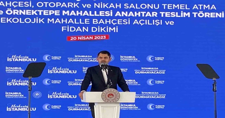 39 ilçede tek bir riskli yapı kalmayıncaya kadar çalışacaklarını söyleyen Bakan Kurum, "Tabi biz Beyoğlu’muzu da hiçbir zaman unutmadık, unutmuyoruz. Daha 6 ay önce; Beyoğlu’ndaydık, sizlerle beraberdik. Okmeydanı’nda 2024 yılında teslim edeceğimiz 778 konut ve 161dükkanımızın temellerini hep birlikte attık. İşte bugün de Beyoğlu Sütlüce ve Örnektepe mahallelerimizde 2 etapta yürüttüğümüz dönüşüm projemizin 1. etabını tamamladık. 398 yeni sıcak yuvamızın ve 20 dükkanımızın anahtarlarını hak sahibi kardeşlerimize teslim ediyoruz. Yine Küçük Piyale Millet Bahçemizde de ilk fidanlarımızı toprakla buluşturmanın heyecanını yaşıyoruz. TOKİ Başkanlığımızca kuracağımız bu millet bahçemizde; nikah salonundan oyun alanlarına, yeşil yürüyüş yolundan etkinlik çayırına, bisiklet yolundan tematik bahçelere ve yeşil alanlara kadar birçok sosyal donatı alanı yer alacak. İnşallah bu millet bahçemizi önümüzdeki yıl sizlere, Beyoğlu’ndaki kardeşlerimize armağan edeceğiz. Bitmedi. Yine 424 araçlık otoparkımızın ve nikah salonumuzun temellerini atıyor, yapımını tamamladığımız Baruthane Ekolojik Mahalle Bahçemizi de sizlere armağan ediyoruz. Evlatlarımız için sürdürülebilirliği ve Sıfır Atık bilincini eğlenerek öğrenebilecekleri bir ortamın olduğu bahçemizin içerisinde; böcek otelinden spor sahalarına, meyve bahçesinden seralara kadar birçok alan bulunuyor. İnşallah Beyoğlu Belediyesi ve Emlak Konut eliyle tamamladığımız ekolojik parkımız; evlatlarımızı, yavrularımızı hem eğlendirecek hem de eğitecek. Hacıhüsrev Mahallemizde kentsel dönüşüm çalışmalarımızı başlattık. Şu an hak sahipliği çalışmalarımızı yapıyoruz. İnşallah önümüzdeki aylarda bu mahallemizde uzlaşma ofisimizi kuracağız. Ve hiçbir kardeşimizi mağdur etmeden, kardeşlerimizin rızasını alarak burada Emlak Konut eliyle yeni yuvalarımızın yapımına başlayacağız. Yeni Hacıhüsrev’i sizlerle beraber inşa edeceğiz. Bu canlar bu bedenlerde durdukça; Muhteşem Türk Şehirleri için, Herkesin İstanbul’u, Eserlerin İstanbul’u, Hepimizin İstanbul’u için gece gündüz demeden çalışmaya devam edeceğiz" dedi.