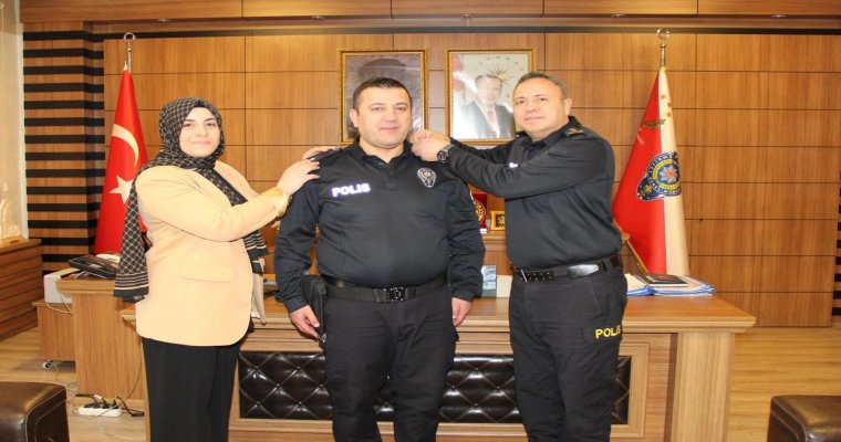 Pazaryeri Gündem / BİLECİK (İGFA) - Geçtiğimiz yıl Bozüyük ilçesinden Pazaryeri İlçe Emniyet Amir Vekili olarak atanan ve aldığı rütbe sonrası Pazaryeri İlçe Emniyet Amiri olarak asaleten atanan evli, ve üç çocuk babası Tahir Oğul, terfi heyecanı yaşadı.