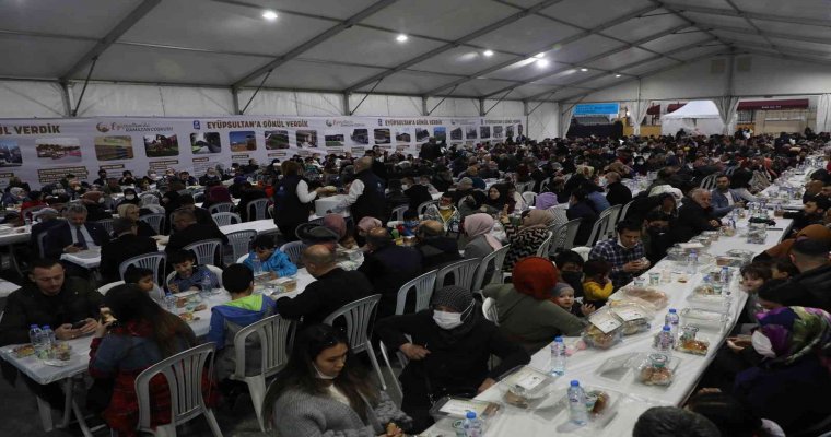 Eyüpsultan Belediyesi, Türkiye’nin dört bir yanından gelen misafirlerini en güzel şekilde ağırlamak için Reşadiye İmam Hatip Ortaokulu bahçesinde kurulan dev iftar sofrasında her gün bin kişilik iftar yemeği veriyor.