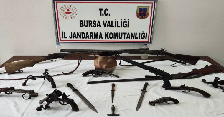 Bursa’nın Osmangazi ilçesinde Jandarma tarafından düzenlenen “Anadolu Mirası Operasyonları” kapsamında, bir şüphelinin evinde çok sayıda tarihi eser niteliğinde silah ve obje ele geçirildi.