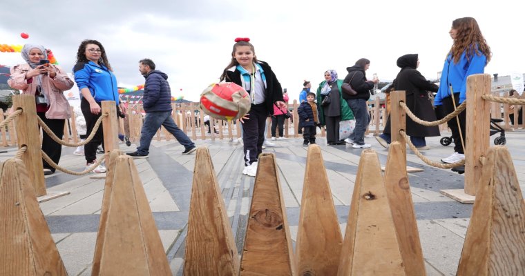 Çocuklar, kendileri için hazırlanan oyun alanlarında gönüllerince eğlenerek 23 Nisan’ı büyük bir neşe içinde kutluyor. Rengarenk süslemelerle donatılan meydan, kurulan etkinlik alanlarıyla adeta bir çocuk şenliğine dönüştü.
