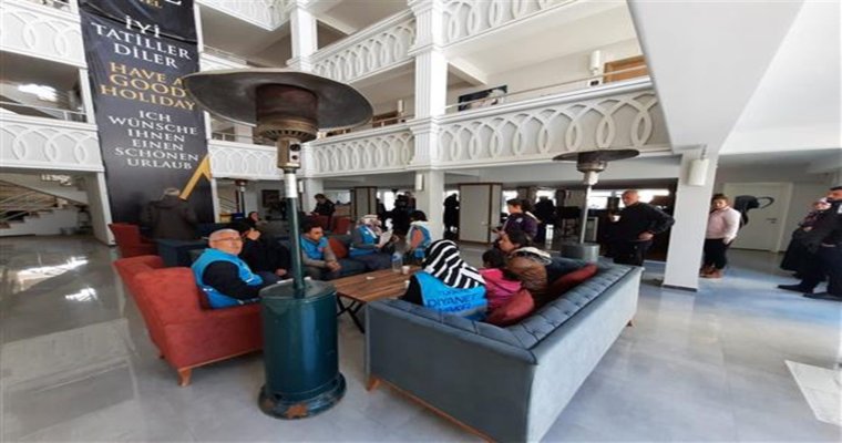 Kahramanmaraş merkezli meydana gelen ve 11 ili etkileyen yıkıcı depremlerin ardından Aydın’ın Didim ilçesine gelen depremzedeler İlçe Müftüsü Hüseyin Susam ve beraberindeki heyet tarafından ziyaret edilerek manevi destek veriliyor.