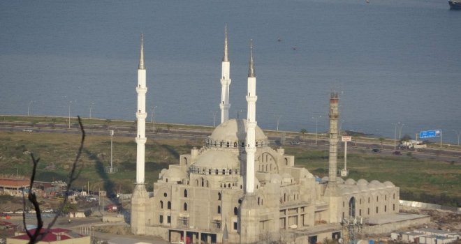Trabzon’un Ortahisar ilçesinde yapımı devam eden Doğu Karadeniz Bölgesi’nin en büyük cami ve külliyesinin inşaatı sürüyor.