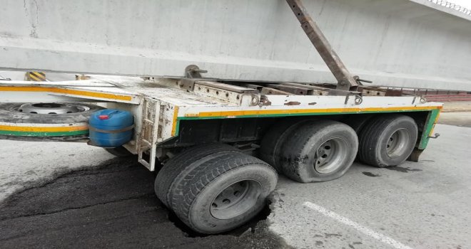 Araklı ilçesinden yola çıkarak Ortahisar ilçesindeki yapımı devam eden Kanuni Bulvarı projesinin Karşıyaka viyadüklerine köprü ayağı taşıyan tır, kara yolunda açtığı çukura düştü. Araklı-Bayburt yolunun eski Sürmene köprüsü mevkisinde meydana gelen olayda tırın ağırlığını taşıyamayan yol çöktü. Yaklaşık 33 metre uzunluğundaki köprü ayağını taşıyan tırın lastiğinin çukura düşmesi sonucu kara yolu ulaşıma tamamen kapandı. Olay yerine gelen polis ekipleri tarafından ulaşım kontrollü bir şekilde tali yoldan verilirken, yaklaşık 1 saat süren çalışmanın ardından tırın lastiği çukurdan kurtarıldı. Açılan çukur kamyonlarla getirilen toprak ve taş parçaları ile kapatılırken, geçtiğimiz günlerde yolda bir göçük daha meydana geldiği ve ekiplerin asfalt dökerek çukuru kapattığı öğrenildi.