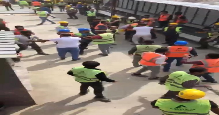 Olay, Başakşehir Kayaşehir Mahallesi’nde bulunan bir şantiyede meydana geldi. İddiaya göre işçiler arasında henüz bilinmeyen bir nedenle kavga çıktı. Kısa sürede kavga, tüm şantiyeye sıçradı. İşçiler ellerine ne geçtiyse birbirlerine fırlatmaya başlarken, çekiç ve çiviler adeta havada uçuştu. Yaşanan olayda bazı işçiler yaralanırken, kavgaya karışanlar polis tarafından gözaltına alındı. Meydan muharebesini andıran kavga, işçilerin cep telefonu kamerasına yansıdı.