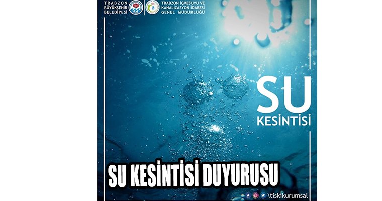Trabzon'da bir çok mahallede ana isale hattı arızası nedeniyle 5 saat su kesintisi uygulanacak.