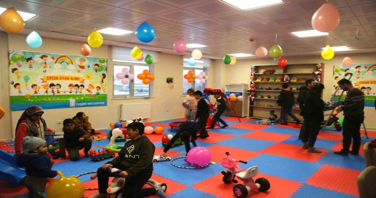 Van’ın Tuşba Belediyesi, şehre gelerek yurda yerleştirilen depremzedelerin çocukları için oyun parkı oluşturdu.